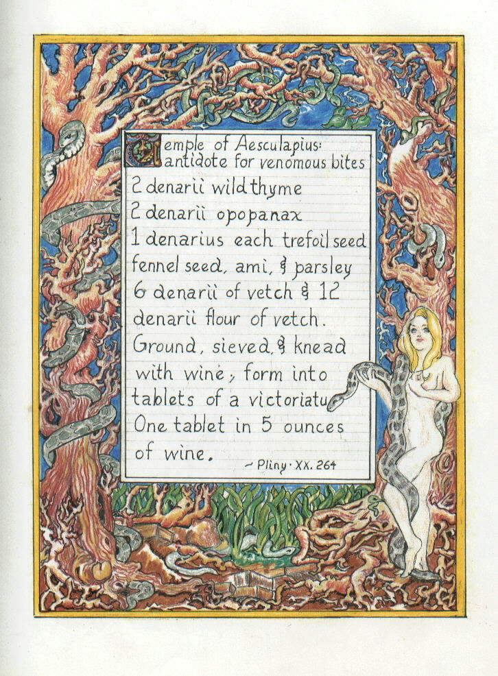 Another illumination, presenting an antidote for venomous bites, also from the Naturalis Historiae