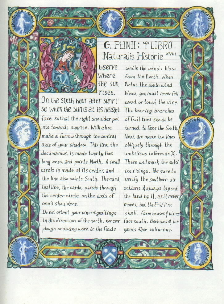 Original illuminated page, depicting chapter XVIII of Plinius Maior's Naturalis Historiae